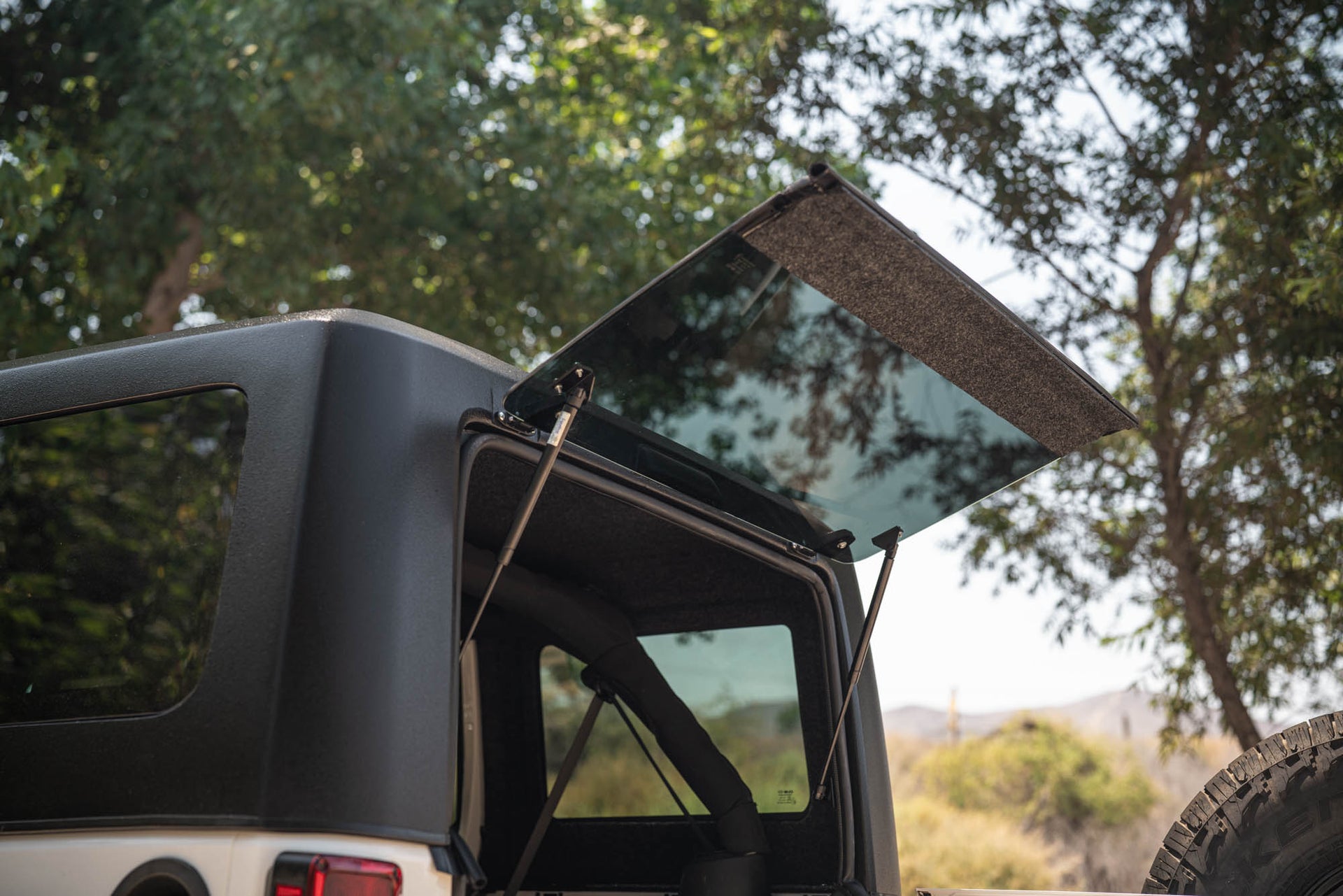 The tinted rear window easily opens up for you to have quick access to the cargo area.