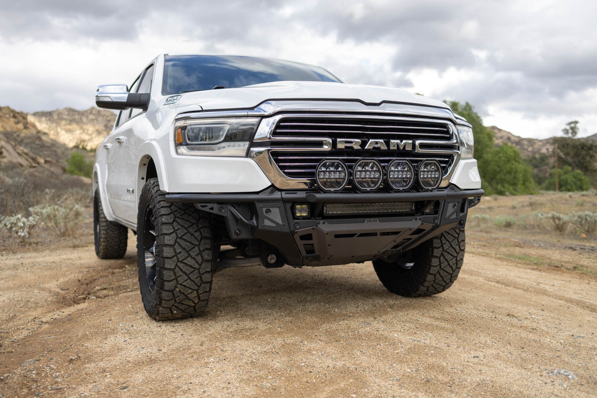 Our Ram 1500 Tube Front Bumper is built for those who push their trucks hard in both high-speed desert terrain and slow, technical rock sections. Its tubular structure and ultra-high-clearance profile keep the leading edge tight to the body, reducing hang-ups while improving the approach angle. A full-length skid plate extends protection down to the cross member, shielding vulnerable components from impacts.