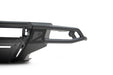 A full skid plate is integrated into the design to increase front-end protection against rocks and trail debris, with a speckled gray finish styled after traditional prerunner layouts. The bumper’s high-clearance profile reduces hang-ups on rocks and improves the approach angle. Welded zip-tie tabs are included for organized wire management. The bumper maintains compatibility with factory parking sensors and installs using a bolt-on process.