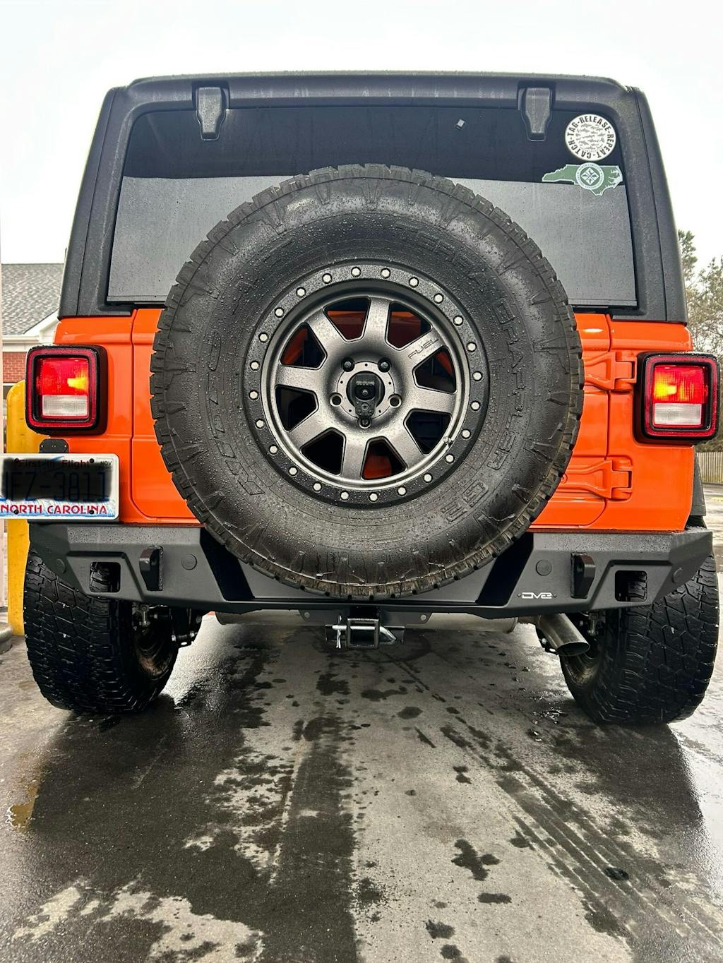 I worry about hitting the Spare while on the trails & have seen many more getting ripped off, or causing a lot of damage to the backend of the rig. Now I worry no more & have an added option to add more lighting to the rear. Install was easy like everything else DV8 Offers. I paired this with the DV8 Crash bar accessories mount with more lights of course , A-pillar pod drop mount with more lights, & added DV8 Skid protection on trailing arms, rear differential & rear shock guard skid plates that already proved their worth. Thank you for making a great product sleek product that stands out & serves a purpose.