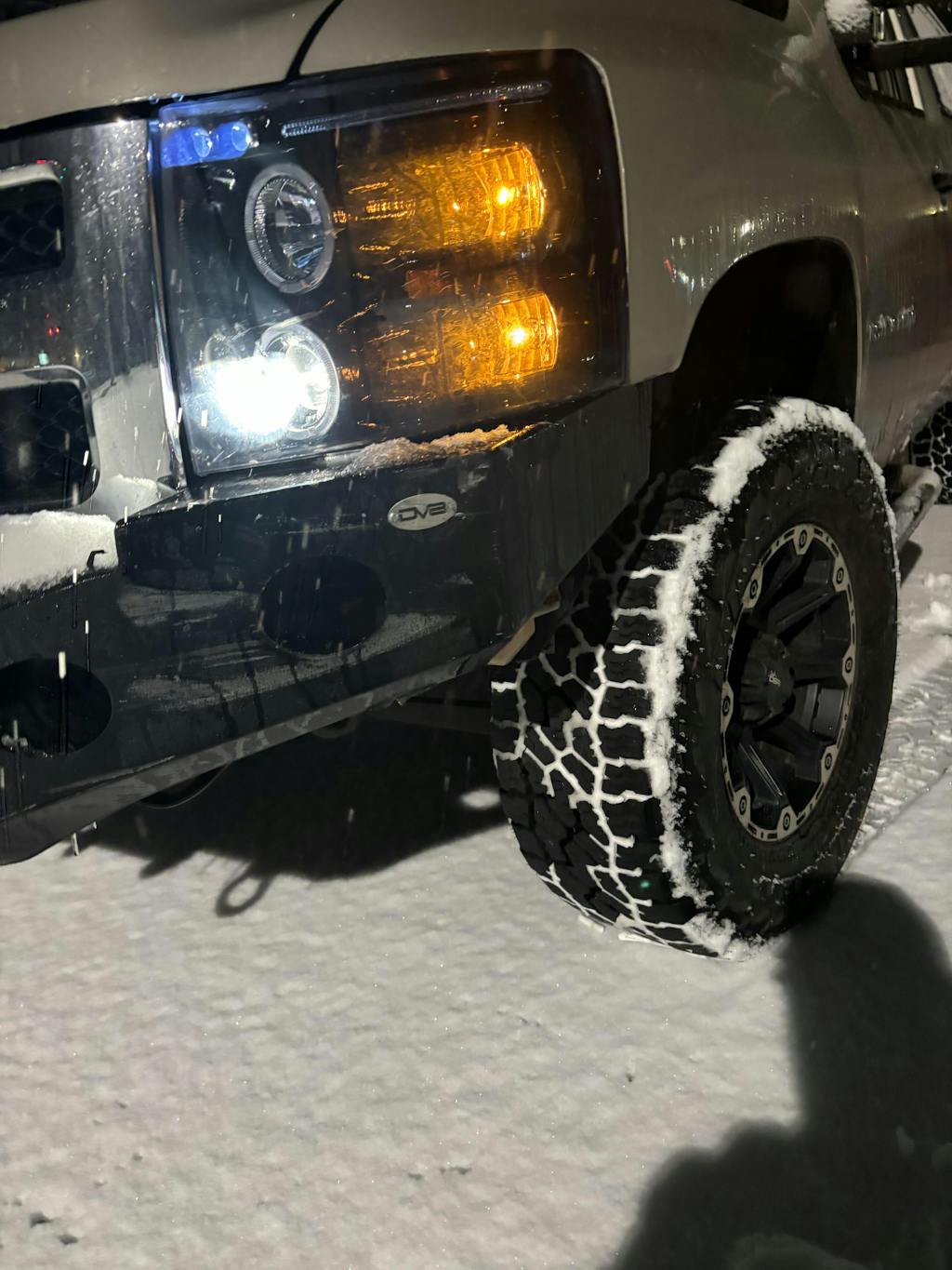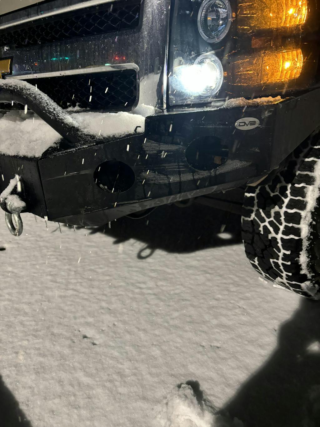 These DV8 Offroad Chevy Silverado 1500 front bumpers are a modular 3-piece design made with high tensile strength 3/16-inch steel and reinforced with 1/4-inch steel in key areas which allows them to accommodate up to a 12,500 lbs winch. There are 4 cutaways for mounting 3.5-Inch Round LED Lights. A 2-stage black powder coat finish protects this Chevy front bumper from the elements.