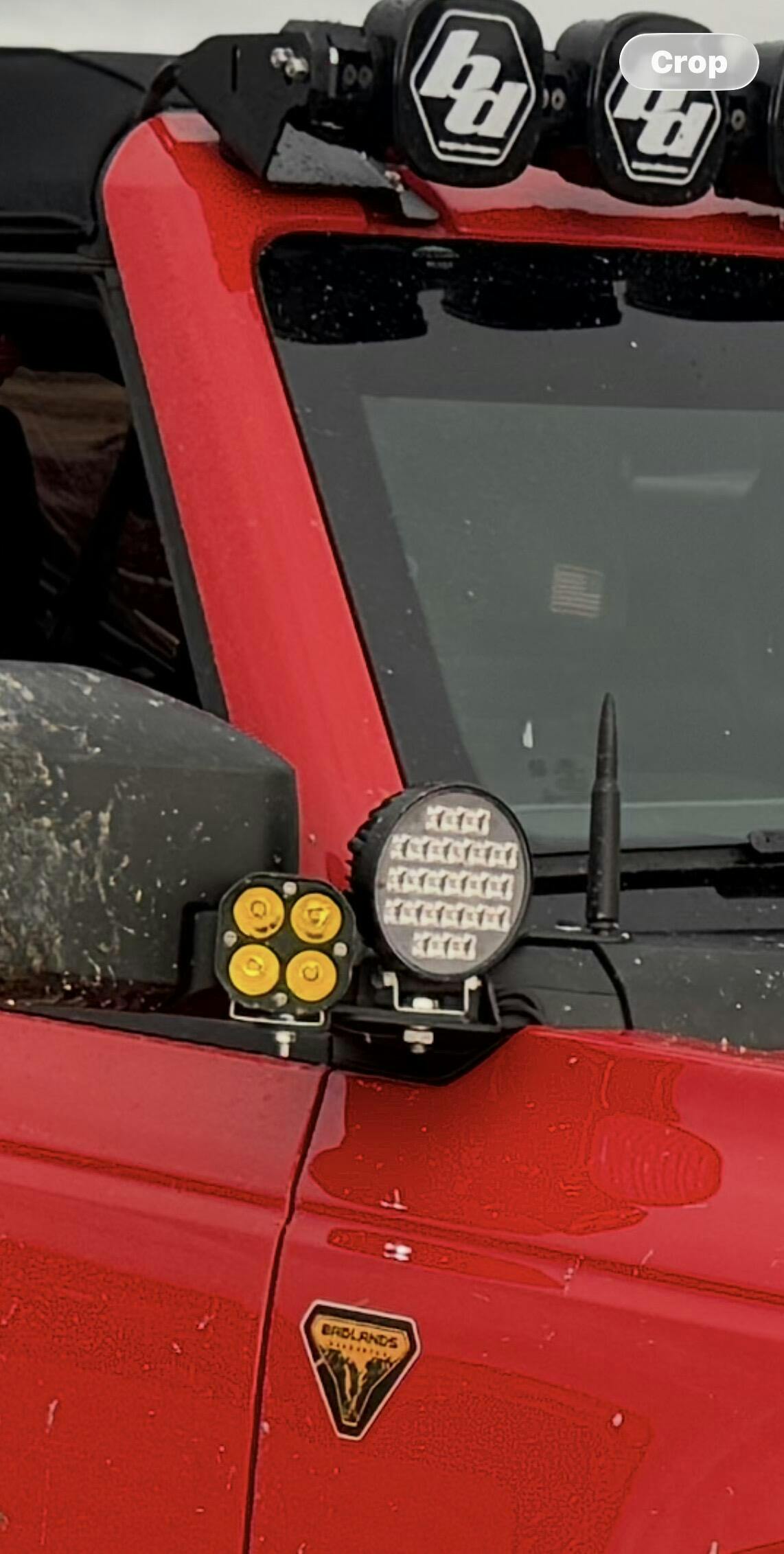 Our 6th Gen Bronco A-Pillar Dual Light Pod Drop Mounts provides options to mount (2) 3-inch light pods on each side of the Bronco. The top light mounting point is perfect for forward-facing or angled lighting. The drop mounting point is great for either forward-facing or side ditch lighting - perfect for dark trail conditions. The brackets sit in a low-profile position to keep the pod lights out of your sightline. Each side has provisions for mounting an antenna or whip flag.