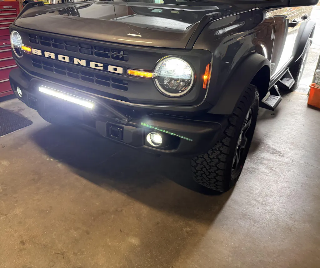 Our 6th Gen Bronco Capable Bull Bar is designed for the OEM Capable Front Bumper, and provides lighting options and light protection when off-road. A 13 to 20-inch dual or single row light bar can be mounted either on-top or below the bull bar for supplemental lighting in dark or dusty conditions. Alternatively, you can run 3-inch pod lights above the bar. Each lighting configuration is easily set up with adjustable and removable light tabs. The bull bar sits in front of your Bronco’s grille guarding it from shrubs, branches, and other light debris. It is made from high-quality steel and finished in a micro-texture black powder coat that accents the Capable Front Bumper’s factory design.