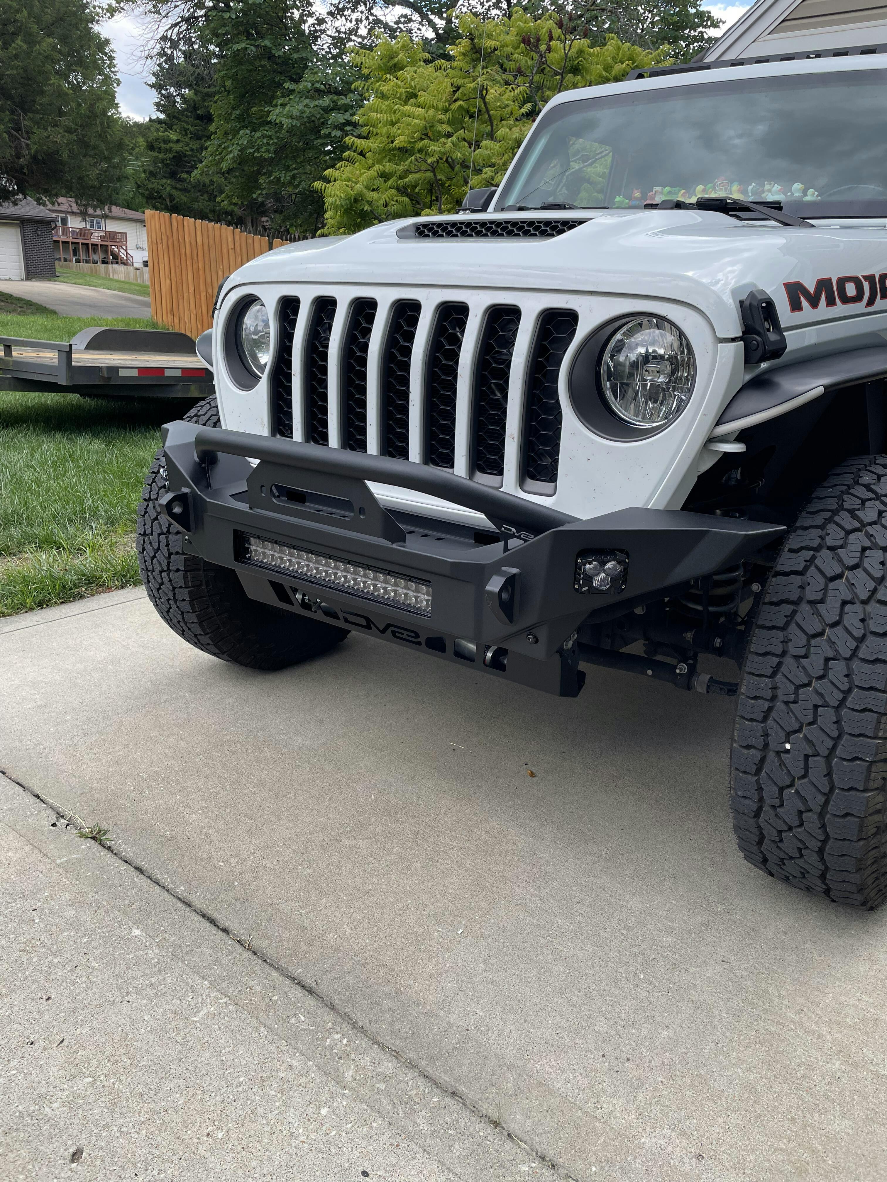 Designed with rock crawling in mind, our Gladiator JT & Wrangler JK/JL Mid-Width Winch Front Bumper boasts a high clearance design. Engineered to perfection and inspired by the classic DV8 FS-7 bumper, this rugged bumper is designed to take your adventure to the next level. Bumper features a recessed winch tray, ensuring your winch stays at a lower profile position. Not only does it provide a sleek and streamlined appearance, but it also accommodates a wide range of winch sizes, making it versatile and adaptable to your needs.