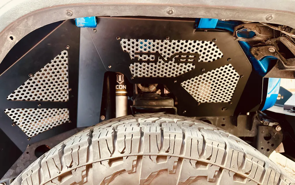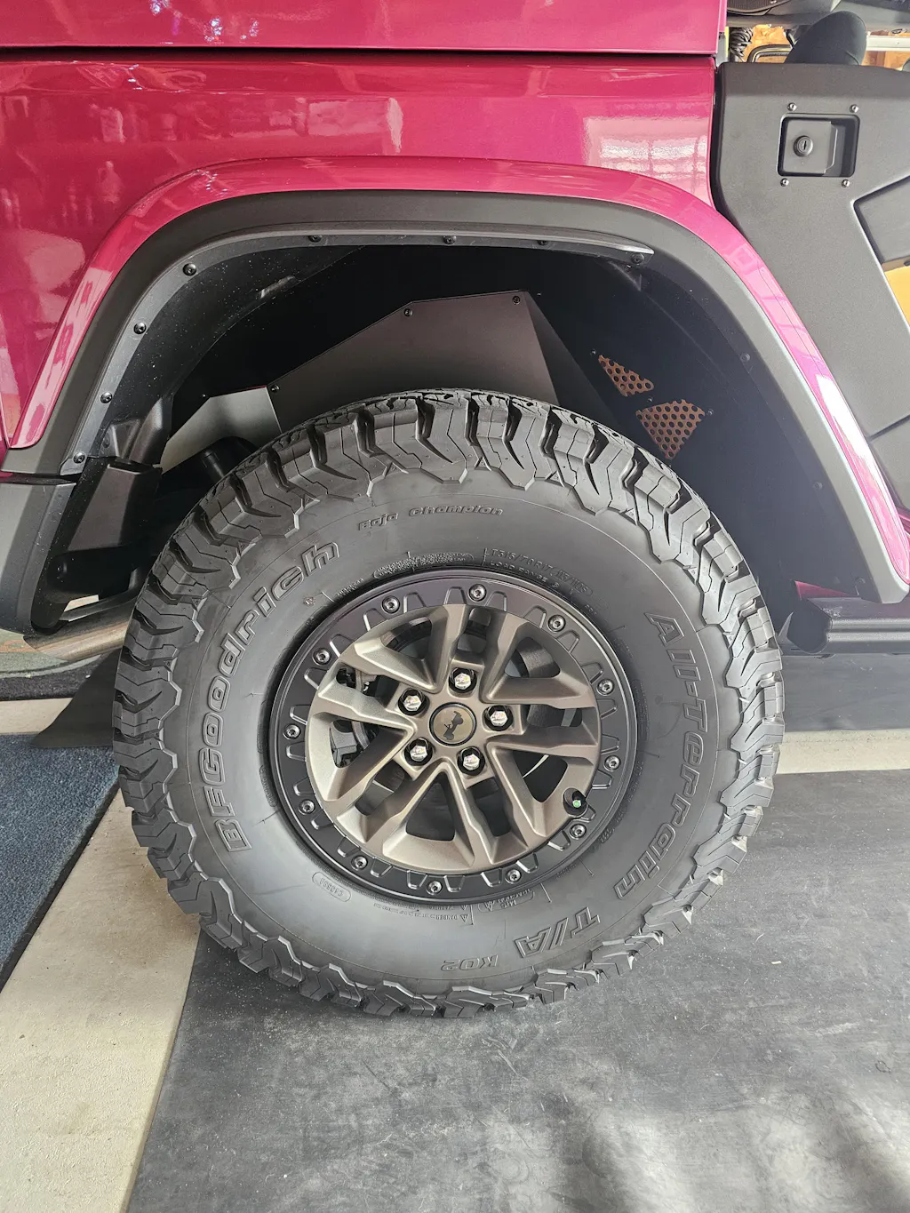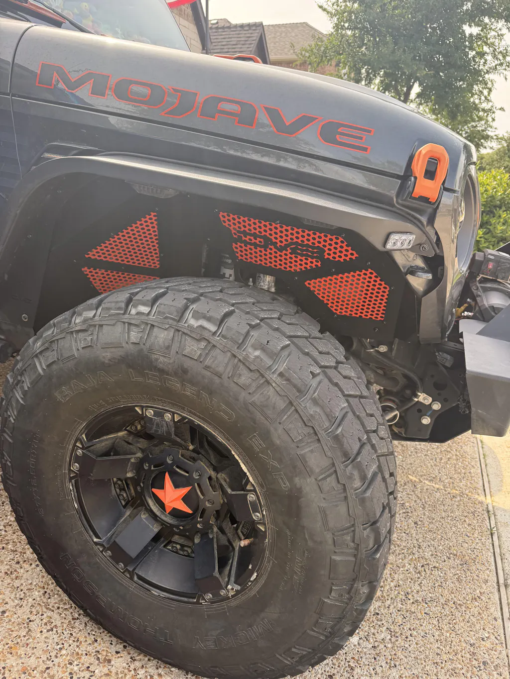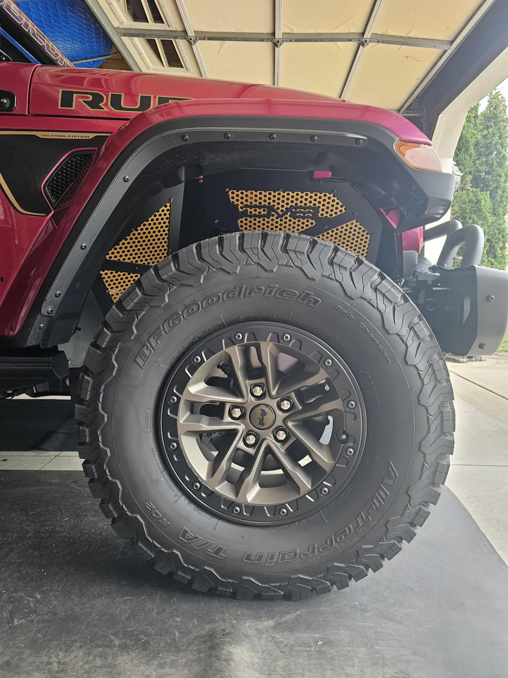 ** Please Note: Our inner fenders have been tested on the 2024 Jeep Wrangler Rubicon X with 35-inch All Terrain tires and aftermarket wheels. We experienced no rubbing on moderate trails with this setup.