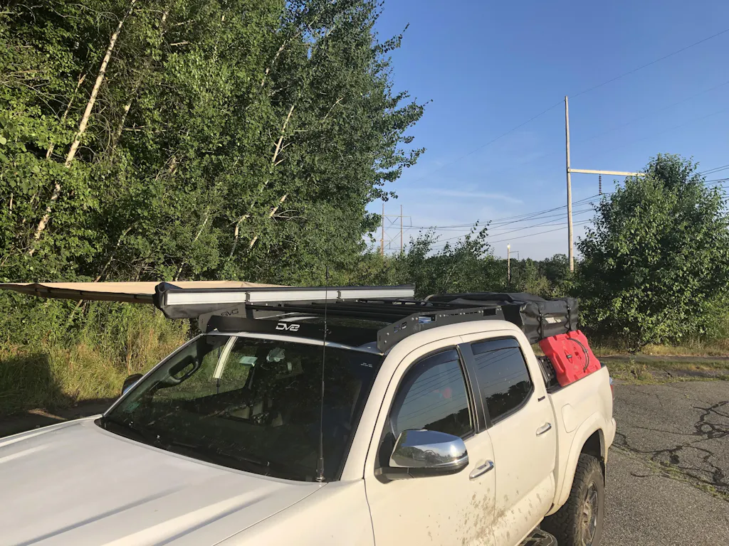 The DV8 Offroad RRTT1-01 Toyota Tacoma Roof Rack utilizes existing holes in the roof of the Tacoma, and has the capability to add a 45-inch light bar (Brackets for 40-inch light bar included). The sides of the rack each have 2 mounting points for 6-inch single row light bars for side lighting options. The cross bars can be used to mount nearly anything imaginable, just slide a bolt head into the crossbar from the end and secure the other side with a nut.